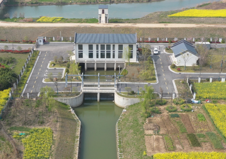 紅廟二站于2019年10月8日正式開(kāi)工建設(shè),于2020年12月1日完工。紅廟二站承擔(dān)龍?bào)春臃趾榈琅艥橙蝿?wù)。工程主要以泵站為主,功能為抽排,兼具自排,屬小(1)型泵站,采用30年一遇排澇標(biāo)準(zhǔn),按24h降雨地面不積水計(jì)算排澇模數(shù),抽排設(shè)計(jì)流量7.5m3/s,裝機(jī)總功率720kW,本工程的等別為Ⅳ等,站下引渠、岸墻、進(jìn)水閘、前池和泵站站身建筑物級(jí)別為4級(jí);穿堤箱涵和防洪閘建筑物級(jí)別取為2級(jí)。工程主要建筑物包括:新建渠道250m、進(jìn)水閘、前池、泵房、出水涵管及防洪閘、消力池、管理房等附屬建筑物。