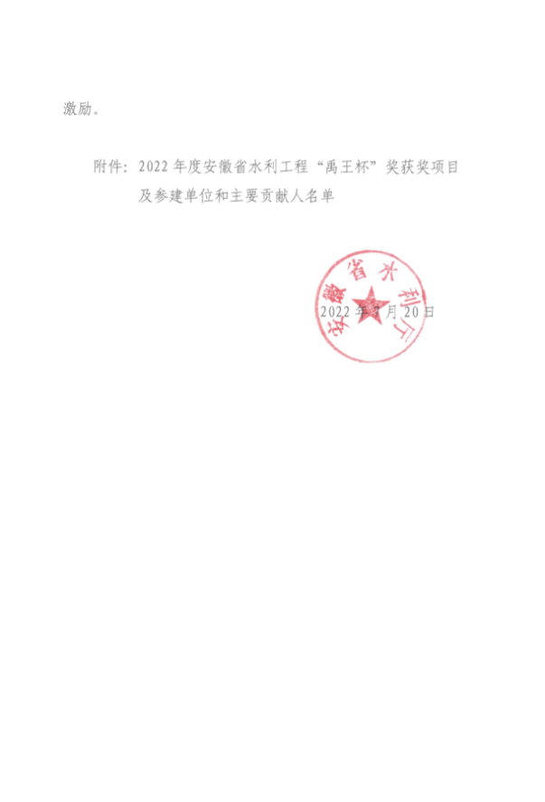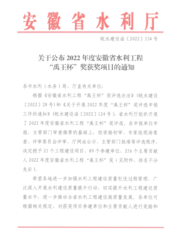 市水利機(jī)械公司承建的滁州市城區(qū)紅廟二站工程,在公司申報(bào)、主管部門審查推薦的基礎(chǔ)上,經(jīng)資格初審、專家組現(xiàn)場(chǎng)復(fù)查、評(píng)審委員會(huì)評(píng)審、廳網(wǎng)站公示、主管部門批準(zhǔn)等評(píng)選程序,正式通過(guò)安徽省水利廳2022年度安徽省水利工程“禹王杯”獎(jiǎng)評(píng)選評(píng)審。